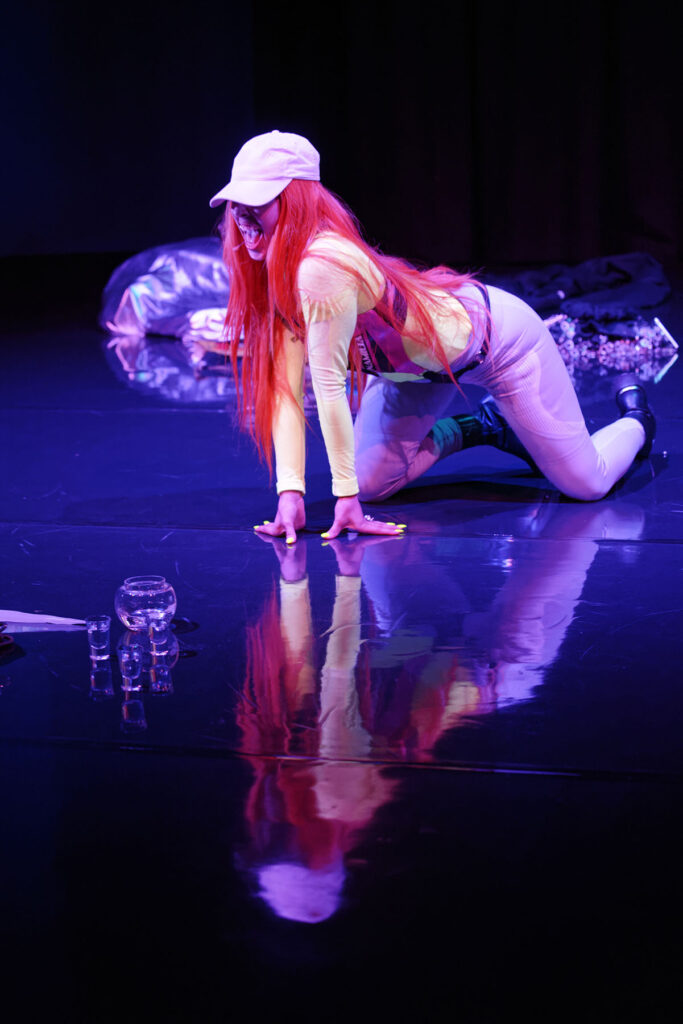 concept, choreography, art direction and performance Ainhoa Hernández Escudero dramaturgy and space design Ignacio de Antonio Antón choreographical advice Veza Maria Fernandez theoretical and dramaturgical accompaniment Miguel Angel Melgares, Tery Žeželj, Joachim Robbrecht and Konstantina Georgelou sound and visuals Juliette Lizotte aka Jujul0v3 featuring songs by Ange Halliwell and Sevdaliza light design Irene Cantero costume featuring work by Floor Van Helmond production friend support Neda Ruzheva, Samuel Godion, Albert Tarrats and Andrea González sound tech Isadora Tomasi produced in the context of DAS Theatre with the support of ICK Artist Space, Centro Coreográfico Canal, Nicole Beutler Projects
